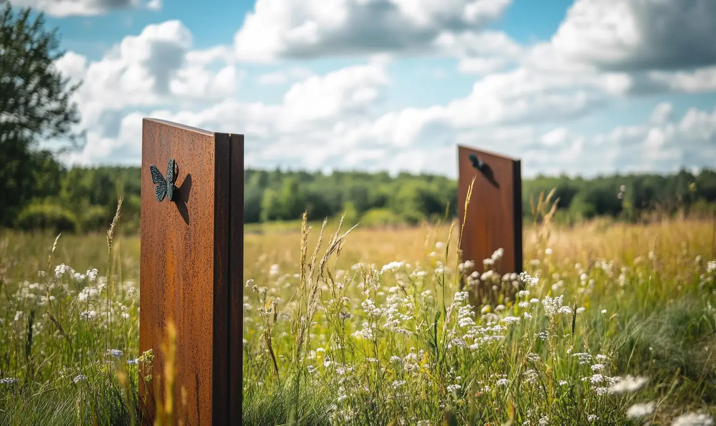 Inspiratie: Bij Grafsteen Cortenstaal combineren we cortenstaal met andere materialen zoals glas en natuursteen, wat zorgt voor een uniek en tijdloos ontwerp.