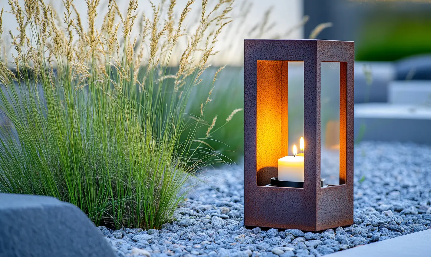 - Verlichte lantaarns: Een klassieke lantaarn, speciaal ontworpen in cortenstaal, kan een eigentijdse maar traditionele toevoeging zijn.